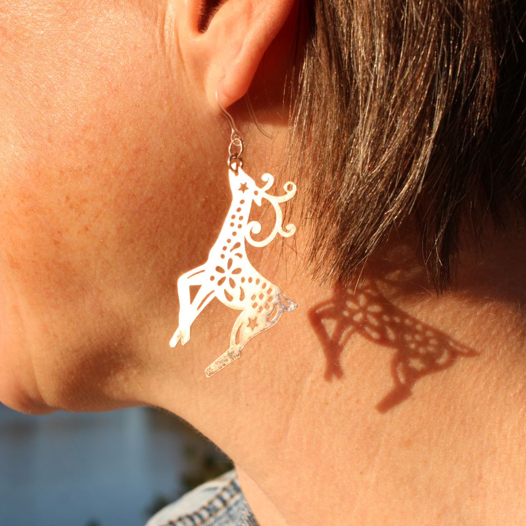 Wow your friends and family with these Large Reindeer Earrings (Dangles)! Made with hypoallergenic plastic hooks, they won't irritate even the most sensitive ears. And with a festive design, they're perfect for the holiday season (or just everyday wear)! Sleigh the fashion game with these lovely earrings.