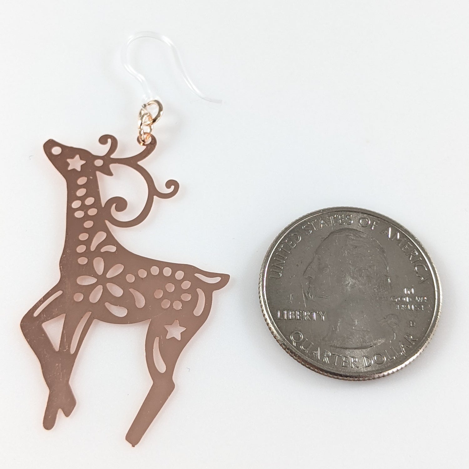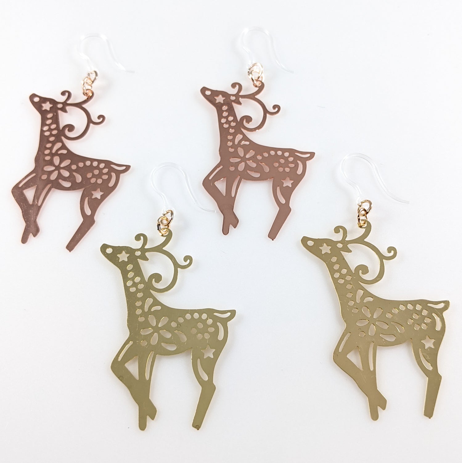 Large Reindeer Dangles Hypoallergenic Earrings for Sensitive Ears Made with Plastic Posts