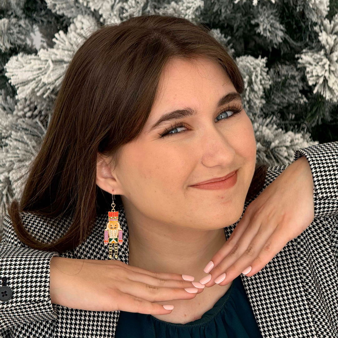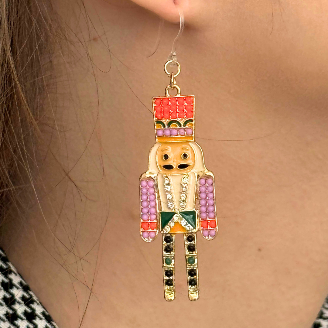 Make any outfit festive with these adorable and fun Exaggerated Jeweled Nutcracker Earrings (Dangles)! Crafted with hypoallergenic plastic hooks, these earrings are perfect for those who have sensitive ears. Rock these lively lightweight pieces of jewelry with confidence--they'll be sure to add a playful pop!