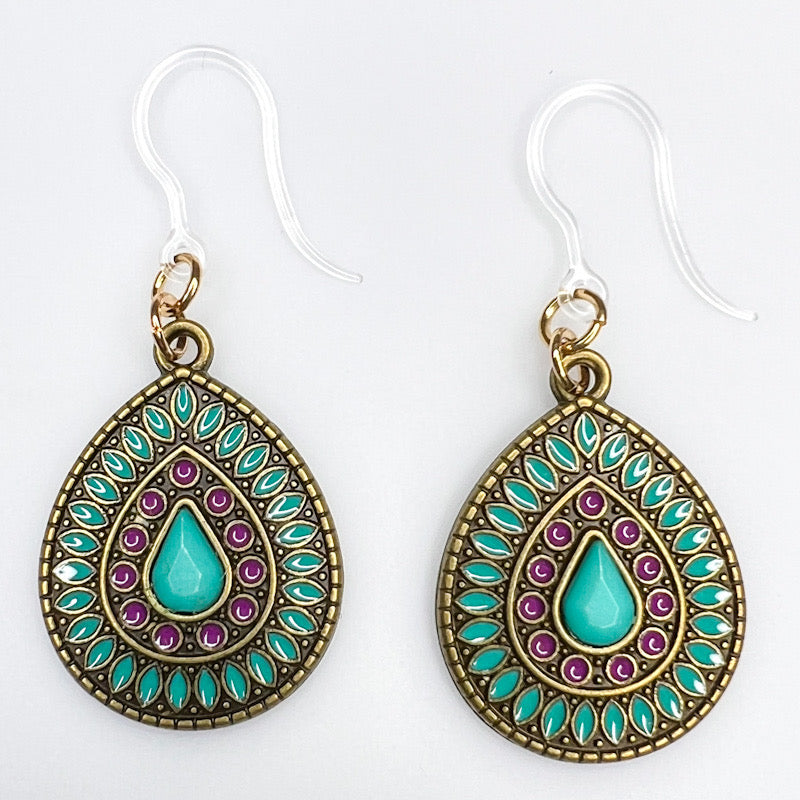 Brassy Stone Dangles Hypoallergenic Earrings for Sensitive Ears Made with Plastic Posts