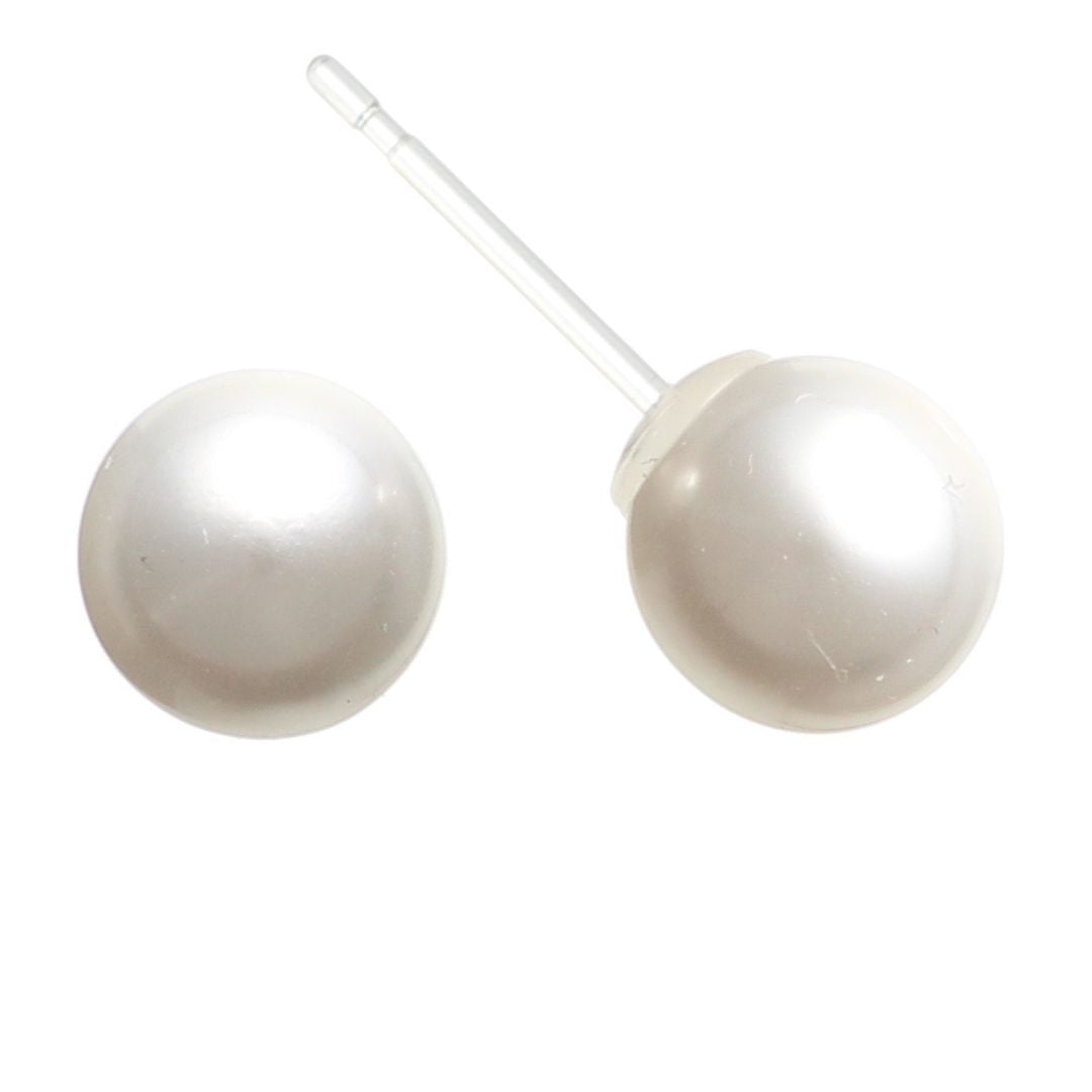 Dazzle your lobes with these Faux Pearl Earrings (Studs)! Crafted with comfort in mind, they're fashioned with hypoallergenic plastic posts so your ears won't be irritated! You can wear these earrings in fancy-form without fear of itchy ears! Get pearl-fectly posh and stylish -- no matter the age!