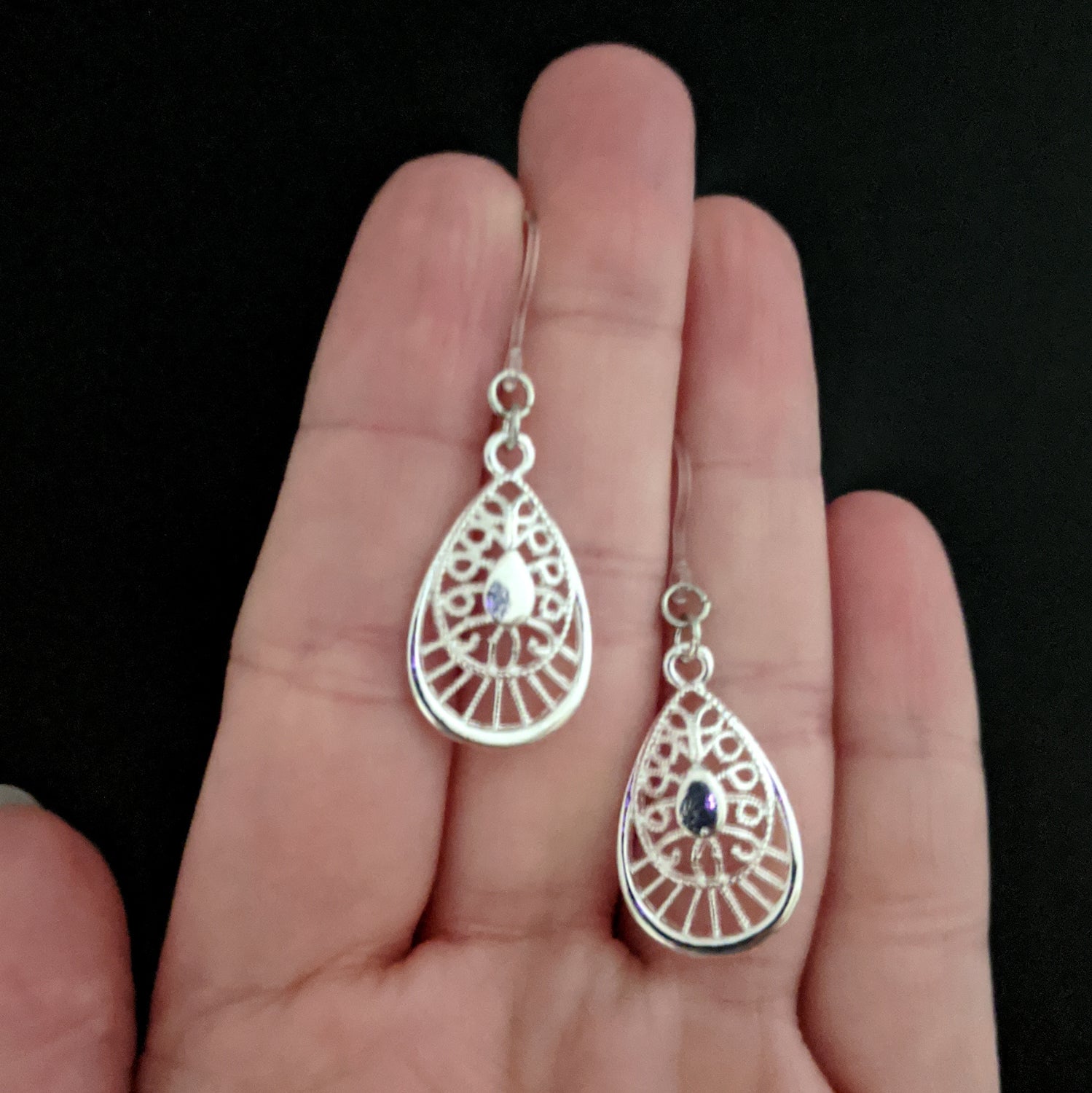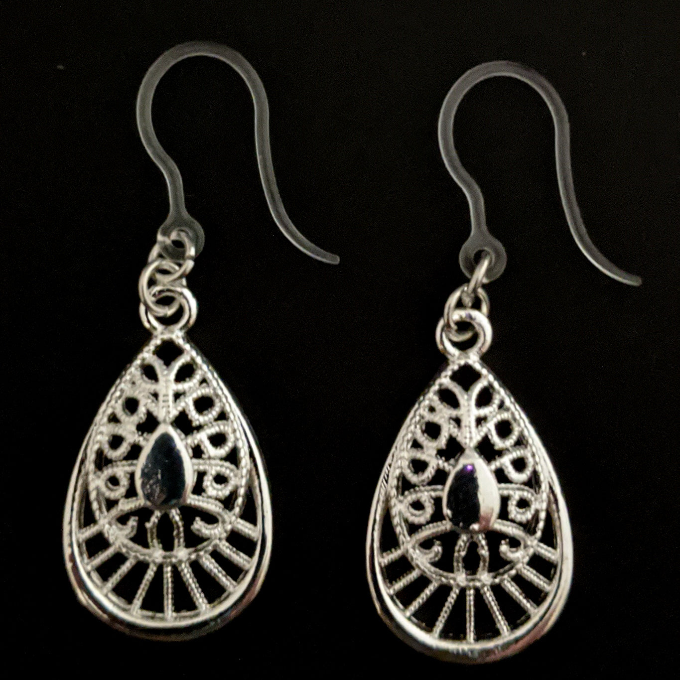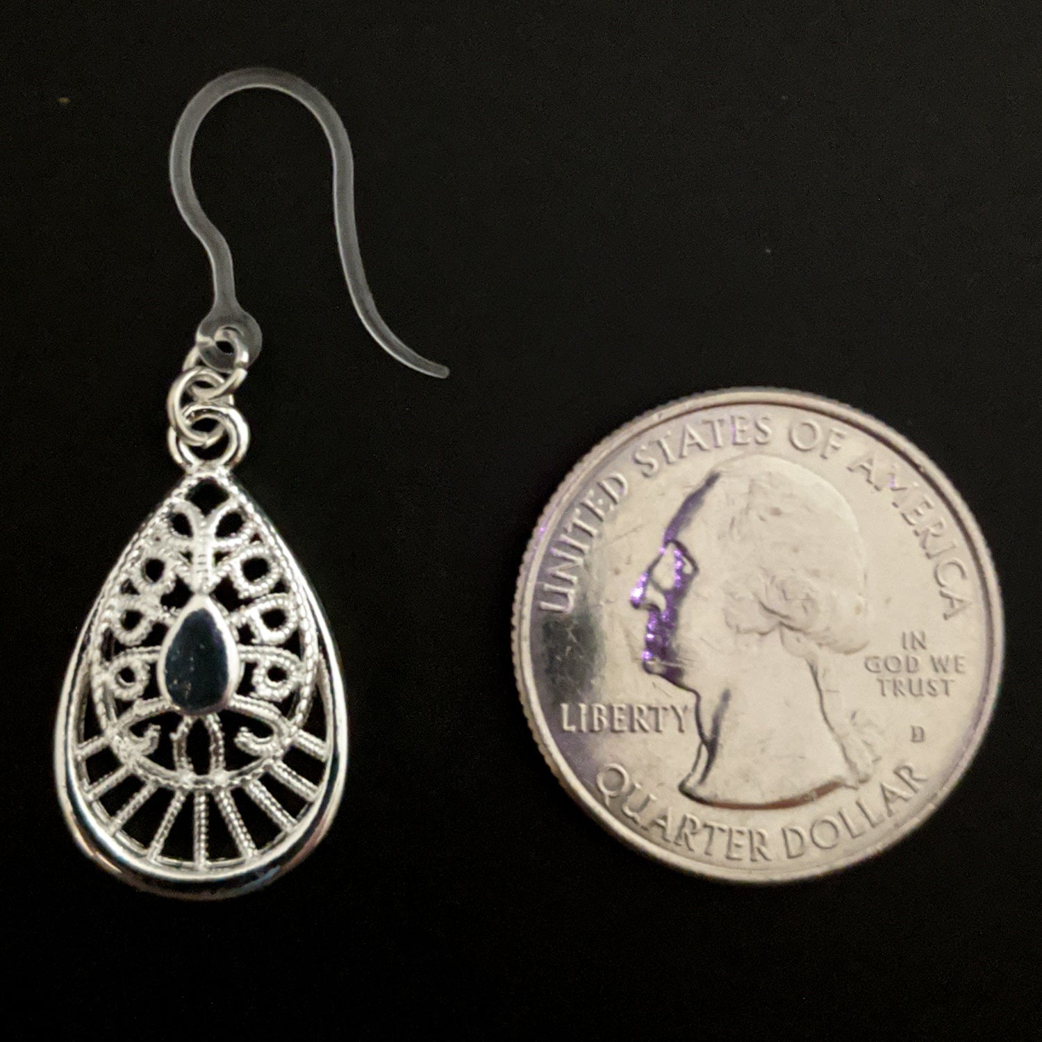 Silver Decorative Teardrop Dangles Hypoallergenic Earrings for Sensitive Ears Made with Plastic Posts